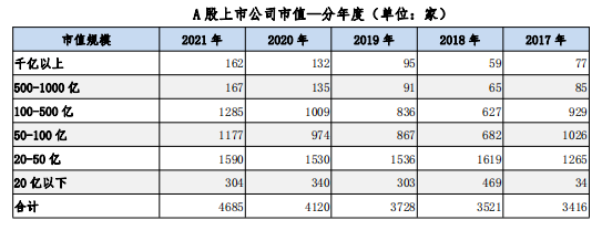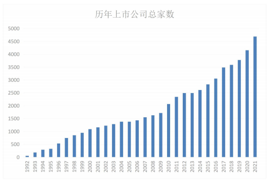 截至2021年12月31日,境内股票市场上市公司合计4697家。