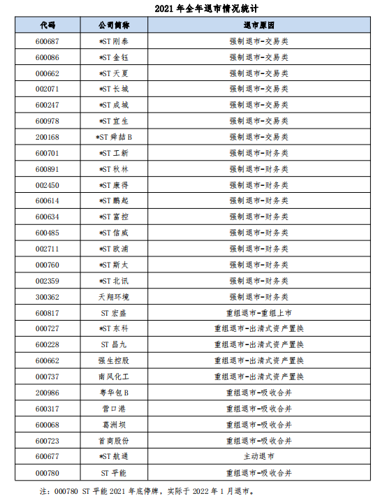 强制退市17家,创历史新高。4家通过出清式资产置换重组退市,5家通过吸收合并重组退市,1家重组上市,2家纯B股公司退市,退出方式更加丰富,市场化退市机制进一步健全。