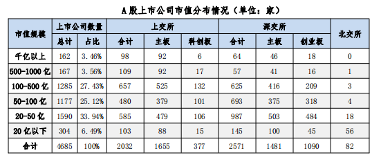 其中,A股公司(含A+B、A+H、A+B+H)4685家,较去年同期增加504家,仅发B股公司11家,B+H股公司1家。三个交易所公司数量分别为上交所2037家(含科创板377家)、深交所2578家(含创业板1090家)、北交所82家。