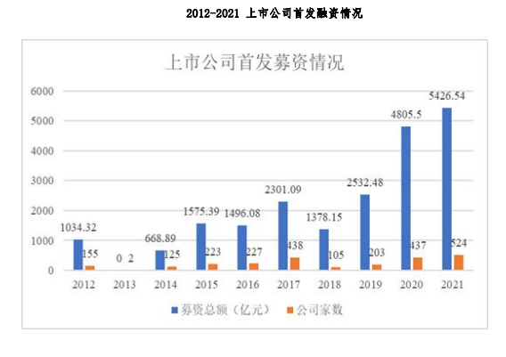 全年A股共有524家公司首发上市,募资总额5426.54亿,均创近10年新高。两创板块首发公司数量合计占比68.89%,募资总额占比64.57%。