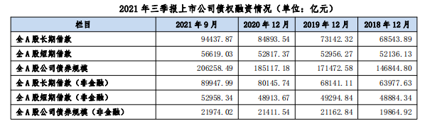 2018年至2021年三季度,上市公司信贷规模持续上升,从2018年的12万亿元增长至2021前3季度的15万亿元,主要系长期贷款规模增长,短期贷款规模增长幅度较小。