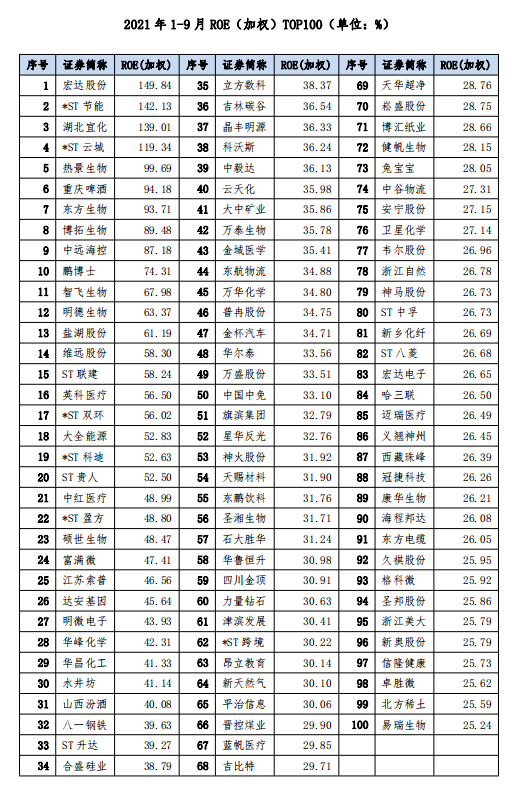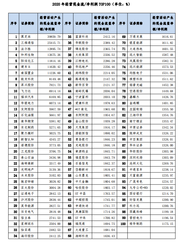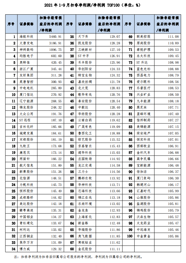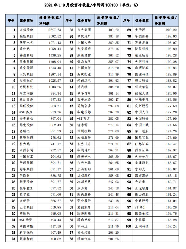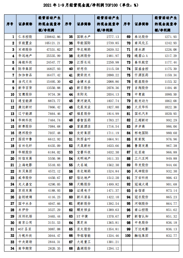 根据2021年三季报数据,对上市公司经营活动产生的现金流量净额占净利润比重、加权平均净资产收益率、投资净收益占净利润比重、扣非净利润占净利润比重等数据指标进行了排序。