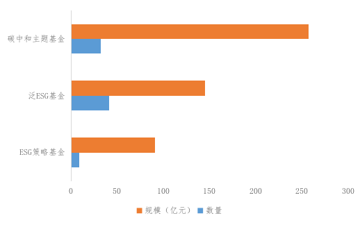 在基金发行端,我们发现碳中和主题基金(256亿)已取代泛ESG基金(145亿),成为新基金募集端的主力。尽管在总体现存数量和规模上仍只有泛ESG基金的一小部分(上文中已提及),碳中和主题基金在2022年的发行规模却远超泛ESG基金。