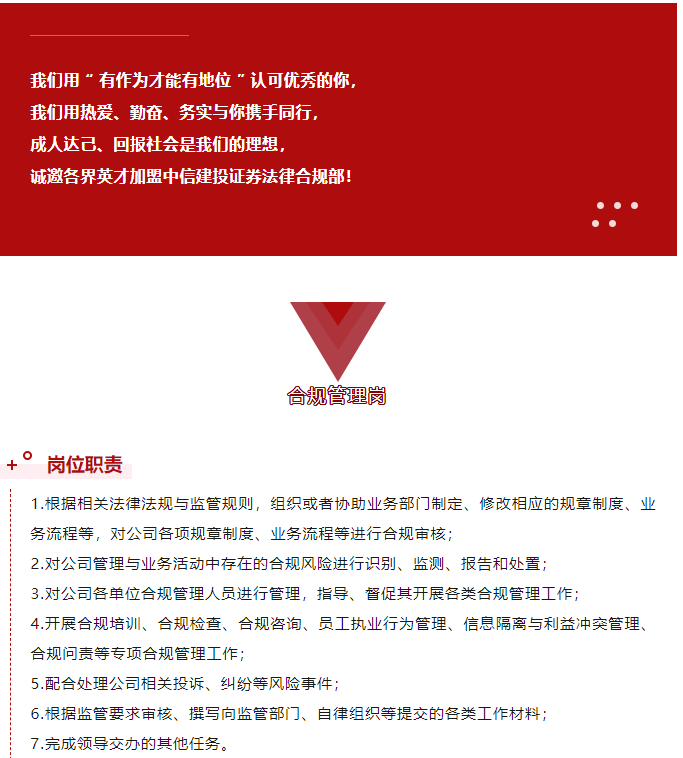 【中上协Job】社招 | 中信建投证券法律合规部诚聘英才(北京)