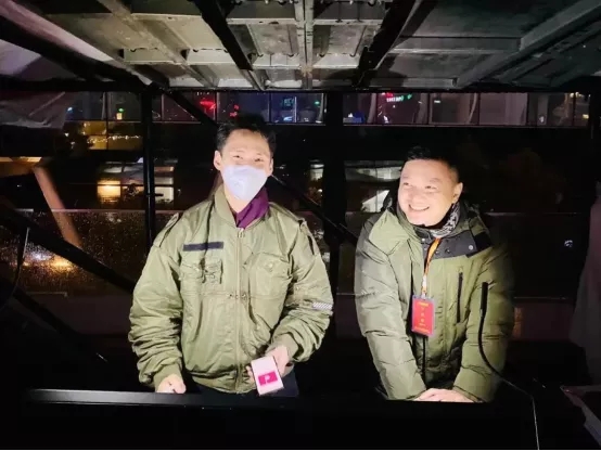 制作团队在完成第一天的设备搭建调试后,导演组为保障后续录制期间绵雨天气的视觉呈现效果,提出设备升级要求,项目团队快速响应,连夜调配二百余台防水电脑灯,“我来”、“我行”、“我上”,这是在凌晨两点项目现场听到最多的那几句话,从设备的装卸、安装再到完成调试,制作团队通宵达旦、连续作战,用激昂的斗志温暖了冬夜刺骨的寒风,冬雨与汗水交织的背后是他们用实际行动书写属于广电制作人的“敬业福”。