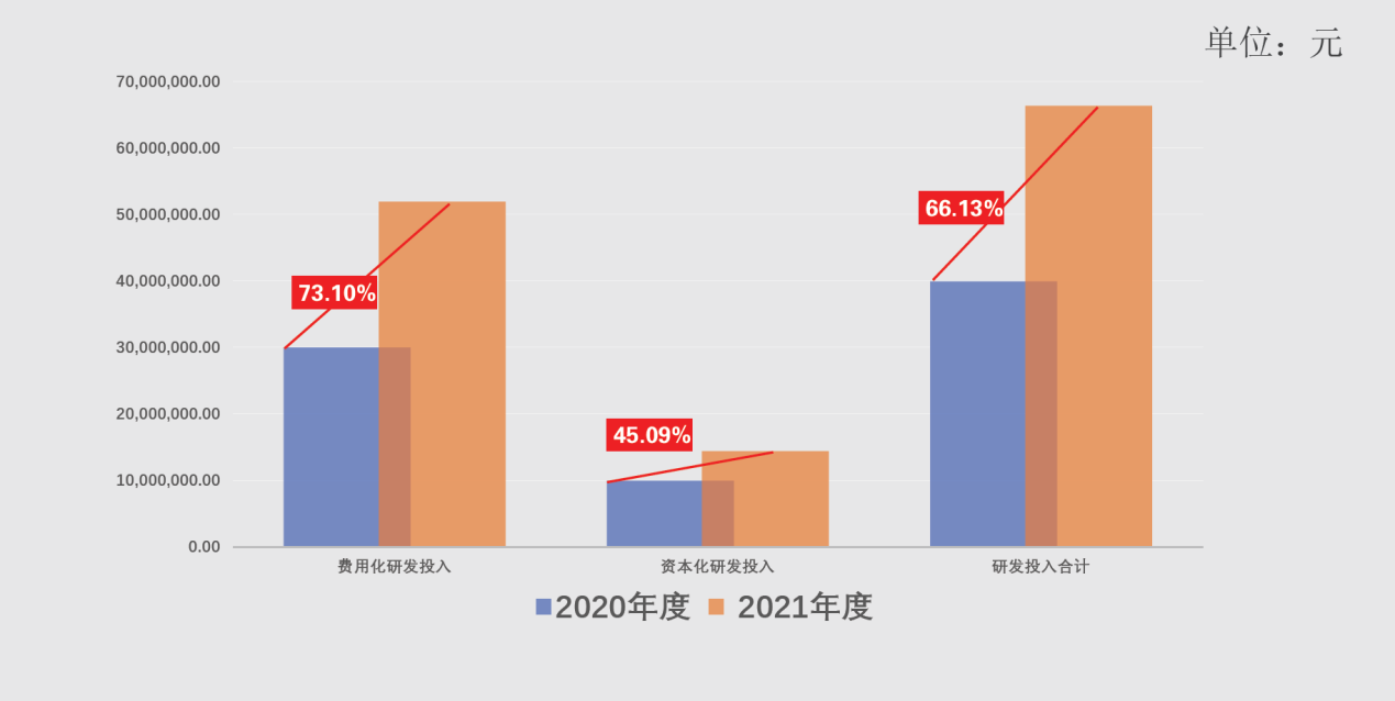公司积极实施自主创新的发展战略,持续加强技术研发投入。年报显示,2021年全年研发投入占营业收入的比例为15.31%,研发投入总额6,632.04万元,同比增长66.13%。截至2021年年底,公司累计申请专利248项,授权且有效专利127项,境外专利覆盖欧洲、美国、日本、韩国、新加坡等国家和地区。