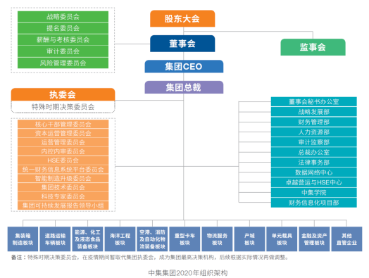 易所关于ESG报告的披露指引要求,建立了董事会领导下的ESG冶理架构,明确董事会战略委员会负责ESG工作,形成了ESG工作运行机制,并持续完善内部相关制度、流程和信息系统,以支持履行ESG职能,支撑ESG报告准确及时的信息披露。特殊时期管控,体现了公司韧性。在新冠肺炎疫情发生后,为管控好集团经营风险,迅速宣布集团进入“特殊时期”,成立了“特殊时期集团决策委员会”,采取一系列风险管控措施。在集团上下同心同德、全力以赴的努力下,不仅管控住了经营风险,同时彰显了中集的可持续发展能力。