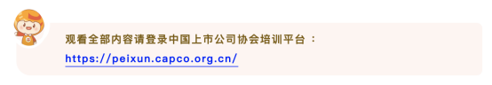 观看更多课程,请登录中国上市公司协会培训平台(https://peixun.capco.org.cn/)“资本运作”专题。