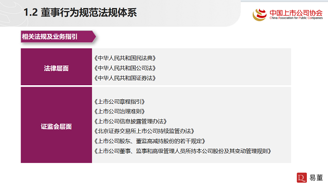 本课程主要从“董事概述及法规体系、董事行为规范的总体要求、董事的行为规范及案例分析”三个部分来进行分享。