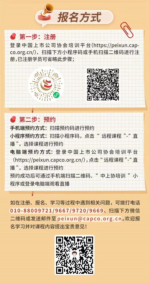 在全面注册制改革的背景下,信息披露质量对资本市场健康稳定发展具有重要意义。年度报告作为信息披露的关键环节,既是监管的重中之重,也是违法违规的高发区。2024年的年报季已经正式开启,为帮助上市公司更好地学习上市公司信息披露法律体系及合规要点,防范和避免董监高在年度报告中触发信息披露违规行为,协会拟举办“上市公司信息披露合规要点及典型案例”专题培训。具体安排如下: